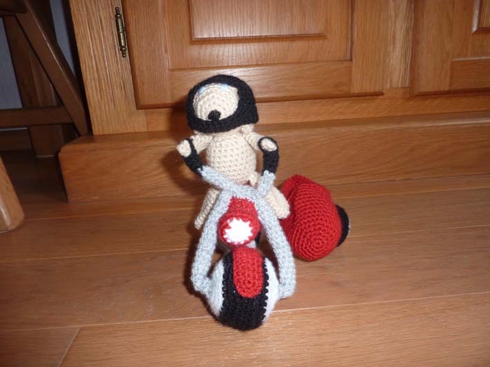 Binnenkort wordt ons petekind 21 jaar oud. Hij is aan het leren voor vrachtwagenchauffeur en heeft alle rijbewijzen die er maar te halen zijn. Natuurlijk ook zijn motorrijbewijs. En toen ik dit patroontje wist te bemachtigen, wist ik gewoon: deze wordt voor hem.